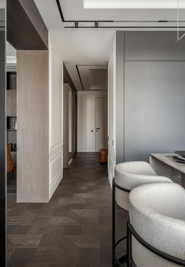 This apartment embodies luxury, blending modernity with classic elegance. The layout and décor play on contrasting materials—metal, glass, wood, leather—to deliver a bespoke interior that fuses French chic with exclusive refinement for our clients.